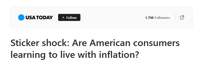 《今日美國》報網(wǎng)站近日報道稱,雖然蓋洛普一項民調(diào)顯示,認(rèn)為通貨膨脹是自身最大財務(wù)問題的美國人比例有所下降。然而,其他調(diào)查結(jié)果卻表明,通貨膨脹依舊深深困擾著美國消費者。