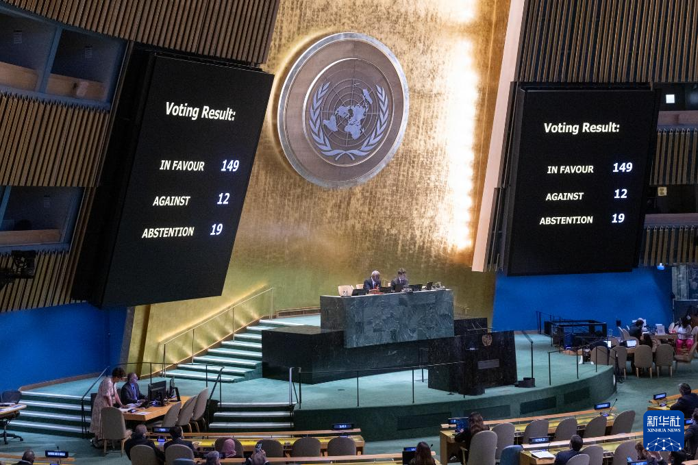 該決議以149票贊成、12票反對(duì)、19票棄權(quán)的表決結(jié)果獲得通過。除以色列和美國外,阿根廷、斐濟(jì)、匈牙利、密克羅尼西亞、瑙魯、帕勞、巴布亞新幾內(nèi)亞、巴拉圭、湯加、圖瓦盧投了反對(duì)票。