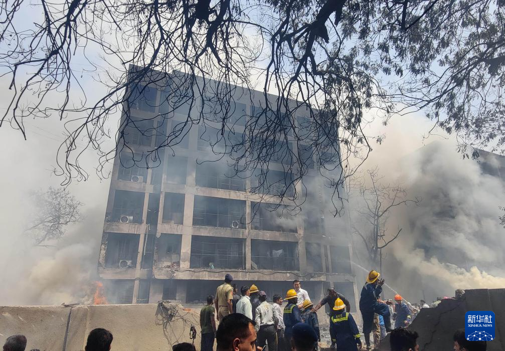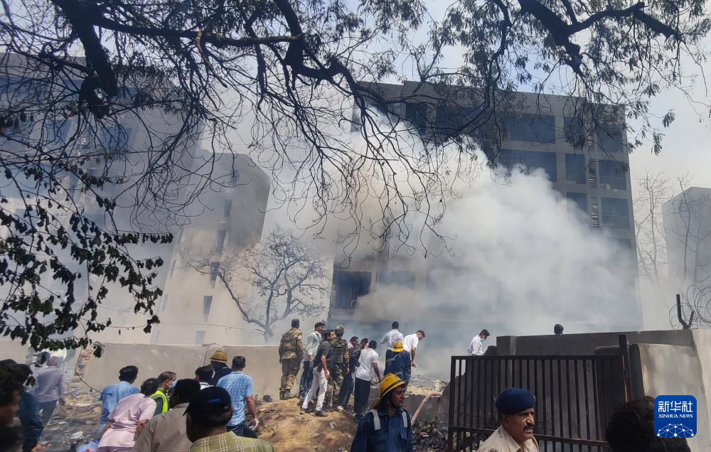 6月12日,在印度古吉拉特邦艾哈邁達(dá)巴德,人們?cè)诳蜋C(jī)失事現(xiàn)場(chǎng)進(jìn)行救援。新華社/印度聯(lián)合新聞社