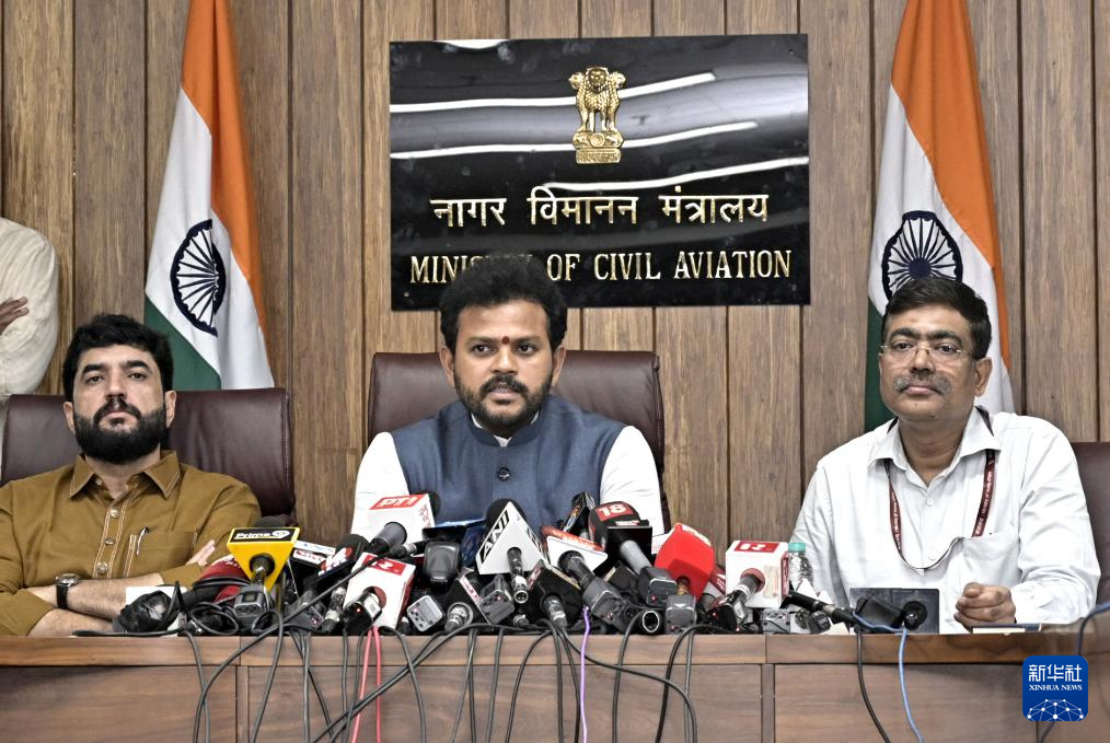 6月14日,印度航空部長(zhǎng)拉姆·莫漢·奈杜在新德里出席新聞發(fā)布會(huì)。新華社發(fā)(印度政府新聞信息局供圖)