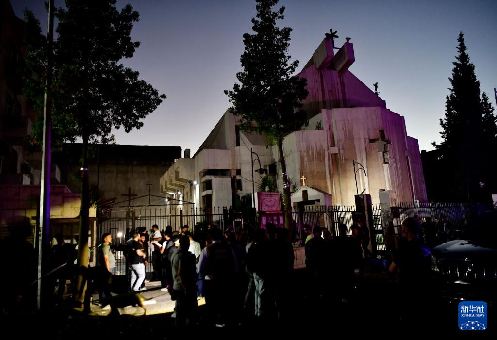 6月22日,人們在敘利亞首都大馬士革東部發(fā)生爆炸的教堂外聚集。新華社發(fā)(阿馬爾·薩法爾賈拉尼攝)
