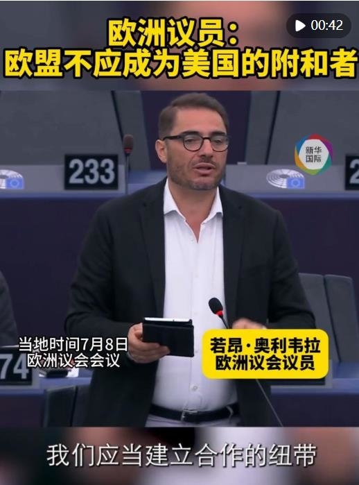 在8日的歐洲議會(huì)會(huì)議上,議員若昂·奧利韋拉在辯論中表示,歐盟不應(yīng)成為美國對華的對抗和緊張升級政策的“附和者”。他說,建立合作紐帶,實(shí)現(xiàn)互利共贏才應(yīng)是歐洲處理對華關(guān)系的基本態(tài)度。