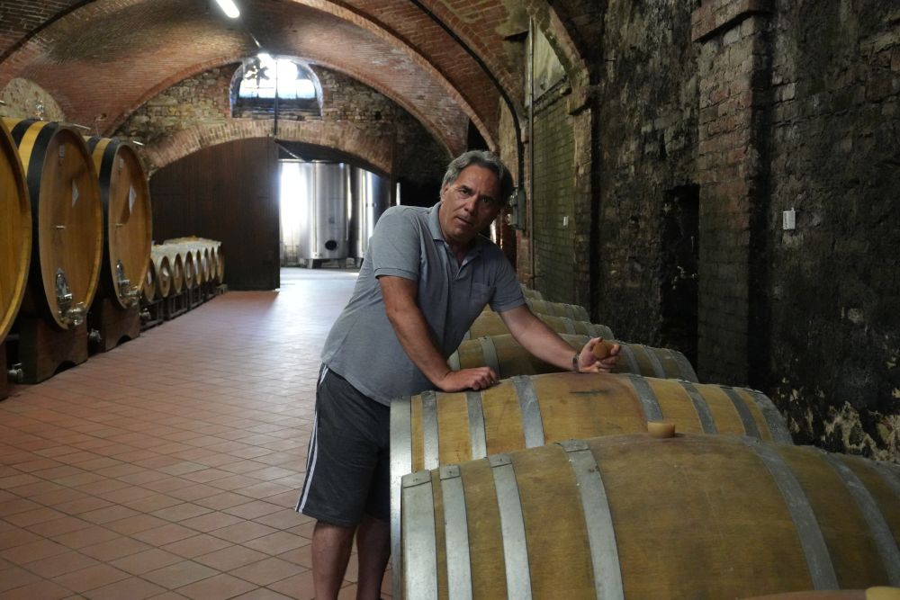 8月17日,在意大利塞拉倫加達(dá)爾巴鎮(zhèn),圭多·波羅酒莊的掌門人法比奧·波羅在酒莊地窖里工作。新華社記者張馨文攝