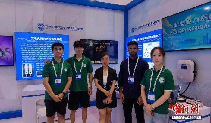 2024年6月,世界智能產(chǎn)業(yè)博覽會(huì)期間,穆罕默德·沙拉爾與導(dǎo)師和實(shí)驗(yàn)室同學(xué)一起參與相關(guān)科研成果展陳工作。(天津大學(xué) 供圖)