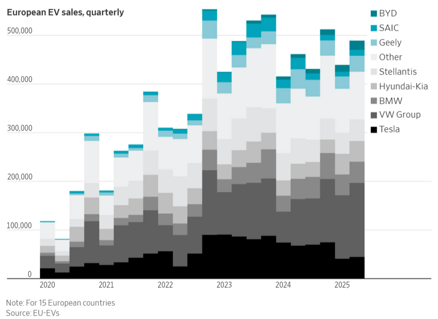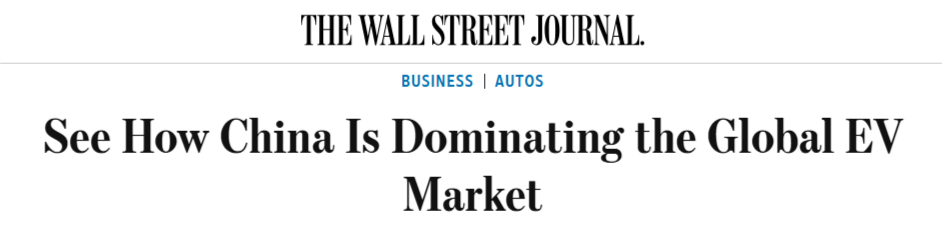 《華爾街日報》9月17日發(fā)表文章稱,在電動汽車領(lǐng)域,“中國制造”的足跡在不斷擴大,目前已占全球電動汽車銷量的一半以上。