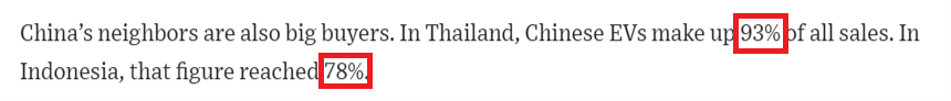其次,中國的鄰國也是電動汽車的大買家。在泰國,中國電動汽車占總銷量的93%。在印度尼西亞,這一數(shù)字達到了78%。