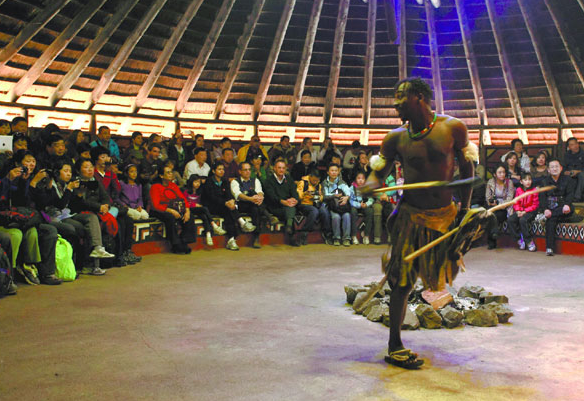 資料圖:中國(guó)游客在南非約翰內(nèi)斯堡郊外觀賞民族舞蹈表演