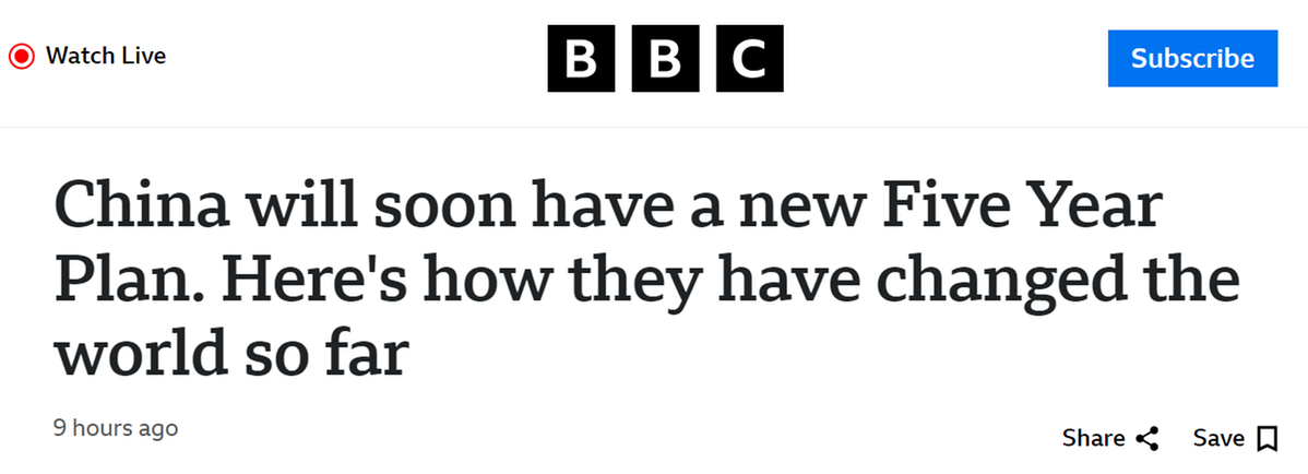 英國廣播公司(BBC)網(wǎng)站報道稱,中共二十屆四中全會將奠定中國未來五年發(fā)展規(guī)劃的基礎,這是世界第二大經(jīng)濟體在2026年至2030年間將遵循的藍圖。歷史證明,中國科學制定和接續(xù)實施的五年規(guī)劃已經(jīng)深刻重塑全球發(fā)展格局。