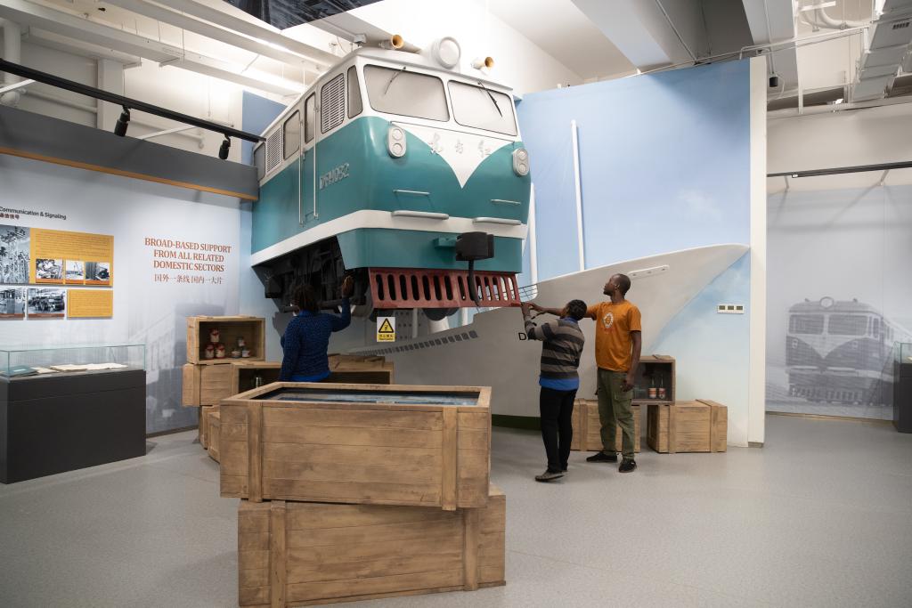 11月12日,在贊比亞坦贊鐵路紀念園,幾名當?shù)厝藚⒂^坦贊鐵路紀念館。新華社記者 彭立軍 攝