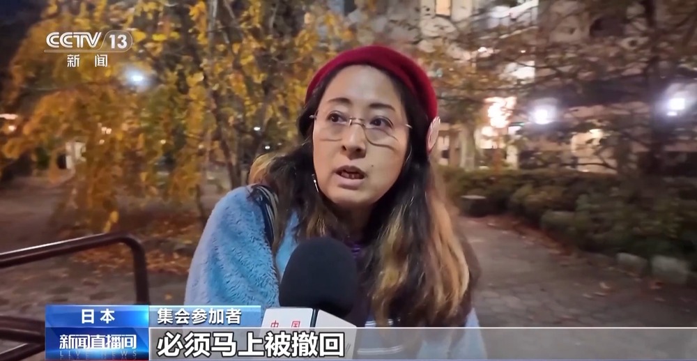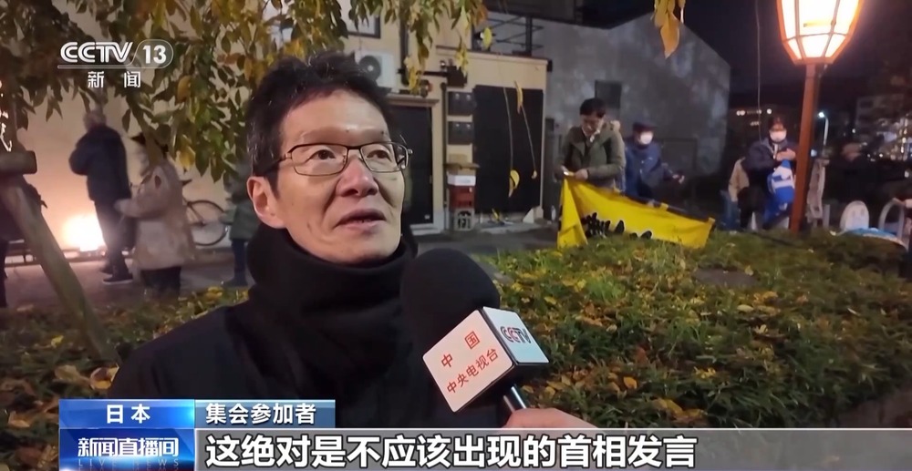 集會(huì)參加者:我當(dāng)然認(rèn)為高市應(yīng)該撤回錯(cuò)誤言論,對(duì)于國(guó)民來(lái)說(shuō),這絕對(duì)是不應(yīng)該出現(xiàn)的首相發(fā)言,我認(rèn)為這是違反憲法的。