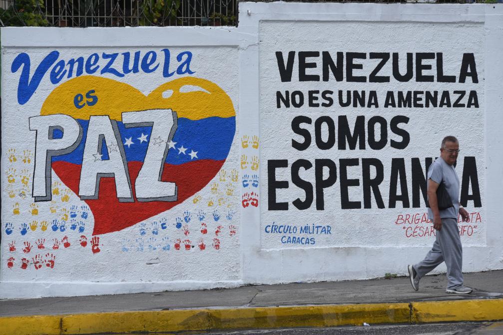 2025年9月22日,在委內(nèi)瑞拉首都加拉加斯,行人從街頭的宣傳標語前走過。標語上寫著“委內(nèi)瑞拉是和平國度”“委內(nèi)瑞拉不是威脅,而是希望”。新華社發(fā)(馬科斯·薩爾加多攝)