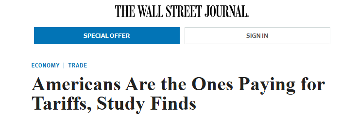 該研究與耶魯大學預算實驗室和哈佛商學院經(jīng)濟學家最近的報告相呼應。報告發(fā)現(xiàn),只有一小部分關稅成本是由外國生產(chǎn)商承擔的。