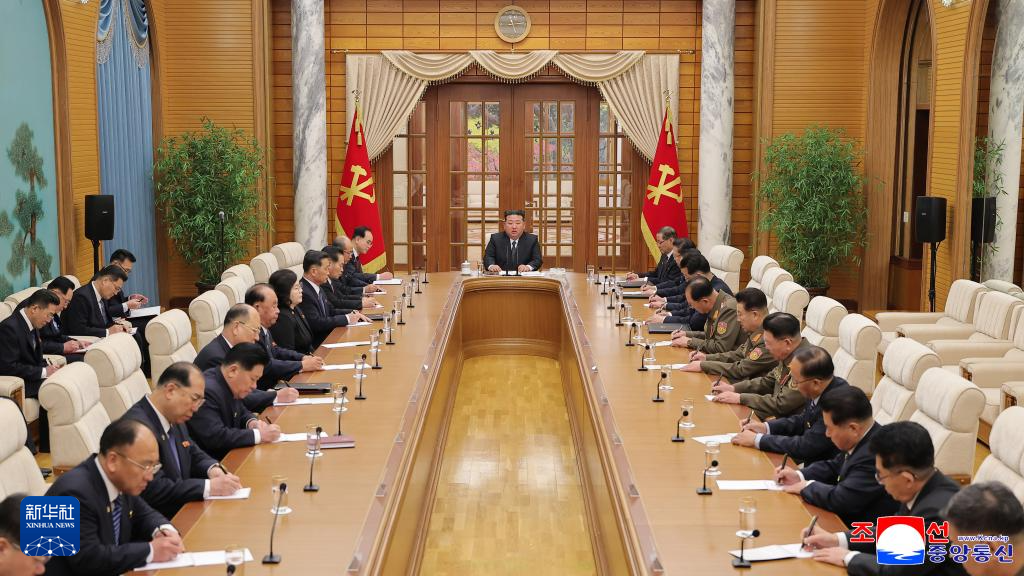 這張朝中社提供的照片顯示的是朝鮮勞動(dòng)黨中央委員會(huì)政治局會(huì)議現(xiàn)場(chǎng)。新華社/朝中社