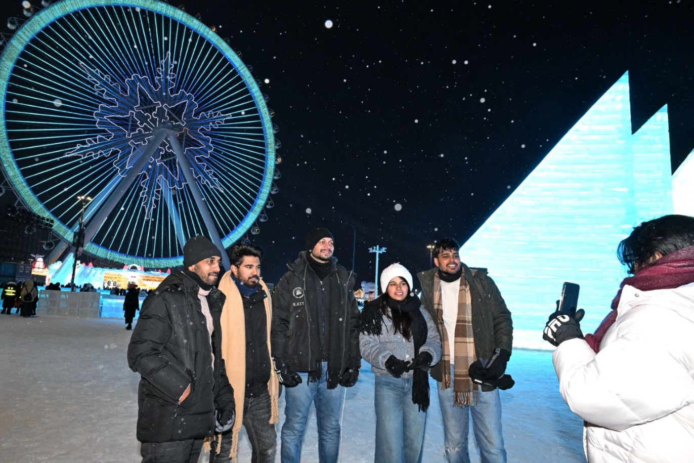 資料圖:外國(guó)游客游覽哈爾濱冰雪大世界