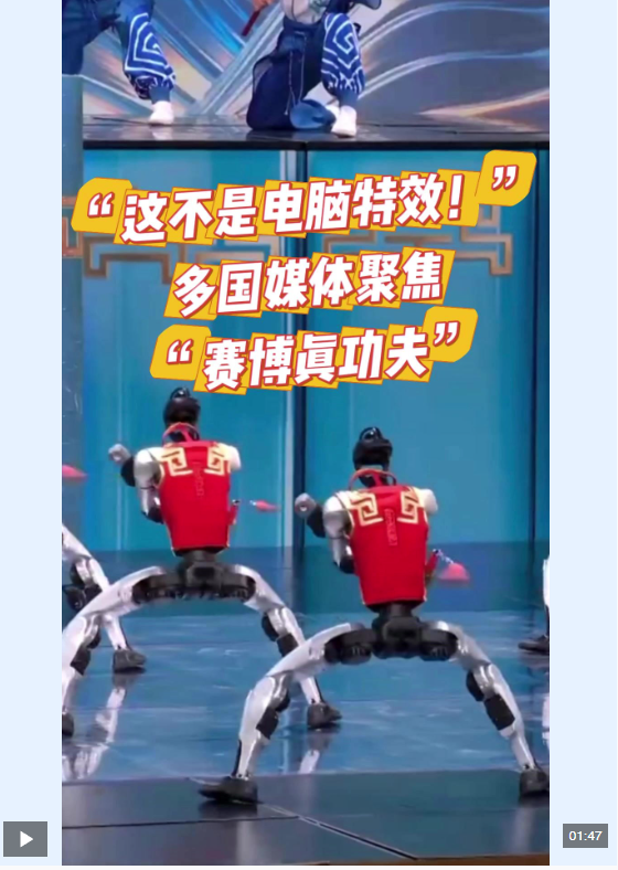 在2026年中央廣播電視總臺(tái)春節(jié)聯(lián)歡晚會(huì)的舞臺(tái)上,人形機(jī)器人獻(xiàn)上的“賽博真功夫”成為了各國(guó)媒體關(guān)注和報(bào)道的焦點(diǎn)?! ?/p>
