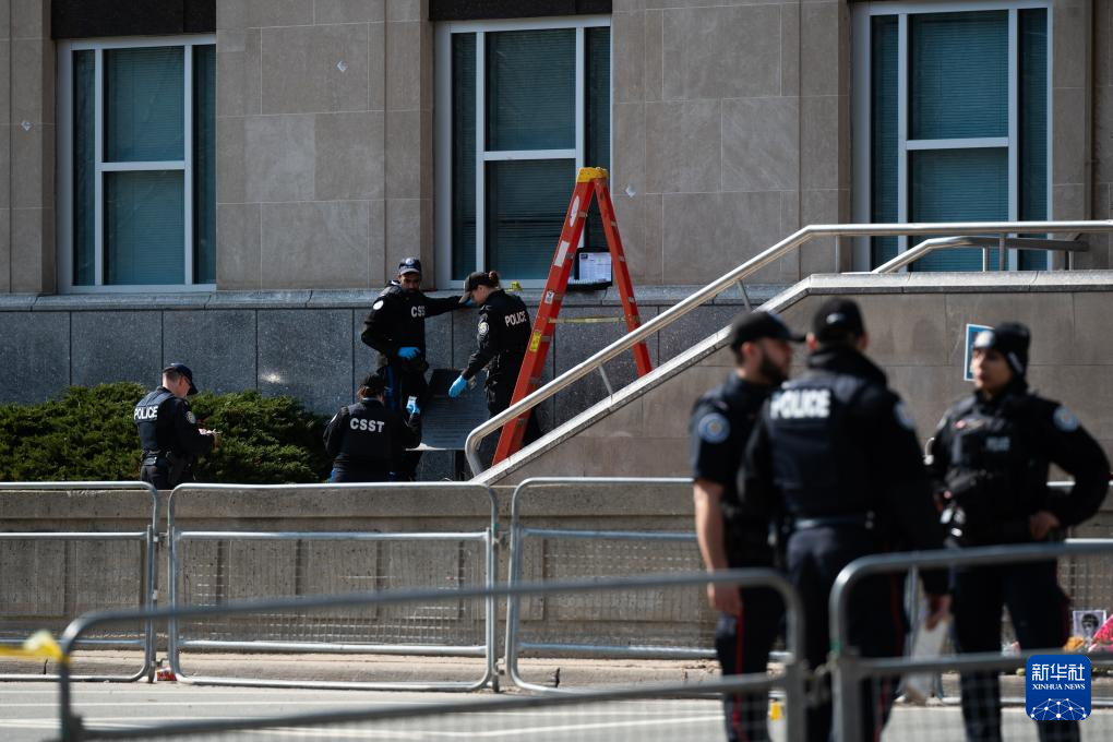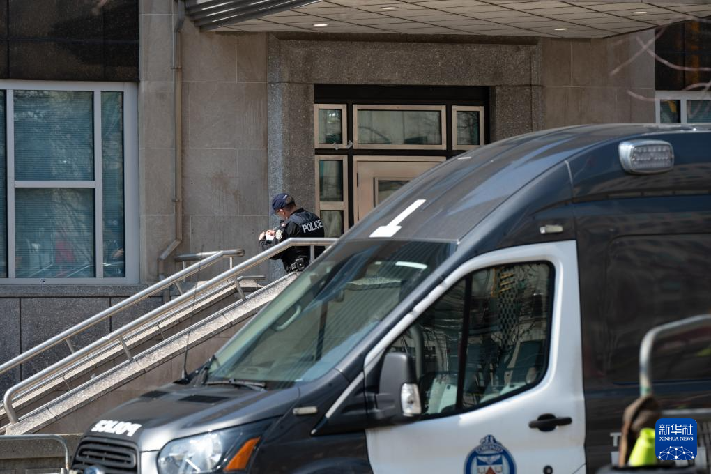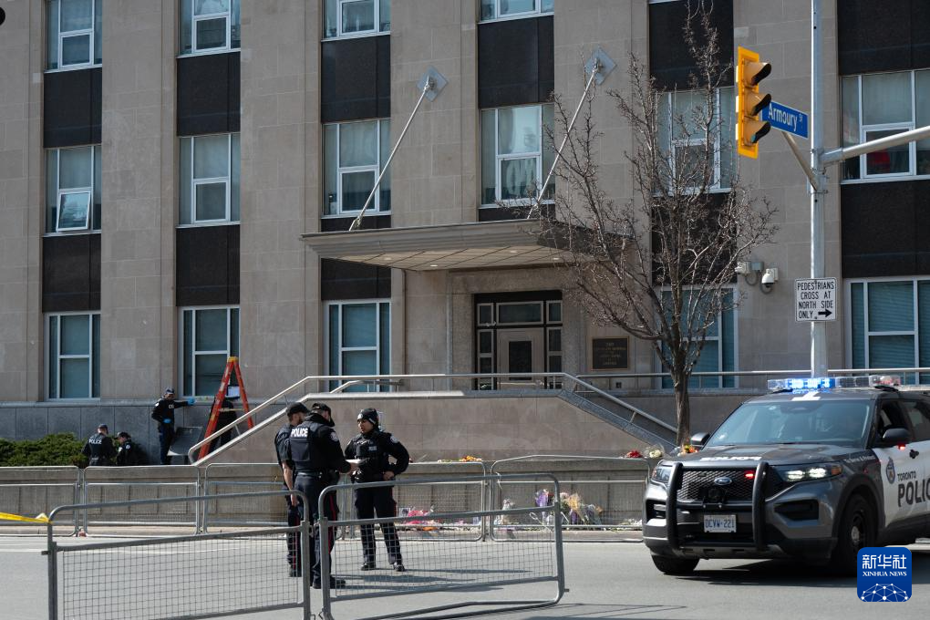 3月10日,警察在加拿大多倫多的美國(guó)駐多倫多總領(lǐng)館外勘察。新華社發(fā)(李海濤攝)