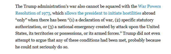 根據(jù)美國(guó)《政客》(Politico)新聞網(wǎng)報(bào)道,美國(guó)憲法規(guī)定宣戰(zhàn)權(quán)屬于國(guó)會(huì),但此次軍事行動(dòng)并未獲得國(guó)會(huì)明確授權(quán)。特朗普政府以“消除迫在眉睫的威脅”為由發(fā)動(dòng)攻擊,但未能向國(guó)會(huì)和公眾提供伊朗即將對(duì)美國(guó)本土或海外目標(biāo)發(fā)動(dòng)具體、可驗(yàn)證襲擊的充分證據(jù)。相反,其公開言論引用的案例多為數(shù)十年前舊事,與“迫在眉睫”的法律定義相去甚遠(yuǎn)。