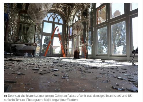 截至目前,經(jīng)伊朗官方確認(rèn),最嚴(yán)重的破壞發(fā)生在德黑蘭市中心的古列斯坦宮(玫瑰宮)。該宮殿是受聯(lián)合國(guó)教科文組織保護(hù)的世界遺產(chǎn)。