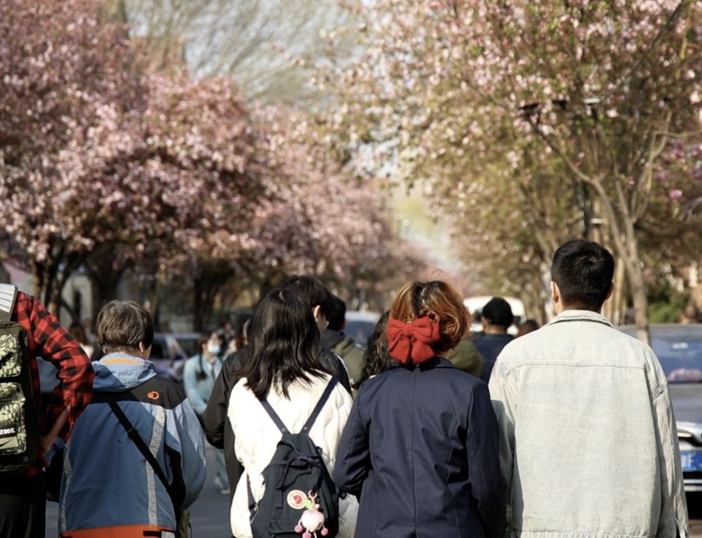 在北京上學(xué)的張曉筱和同學(xué)第一次來天津旅游?!拔宕蟮辣旧砭褪锹糜尉包c(diǎn),春天海棠花開,很值得來打卡?!彼χf。