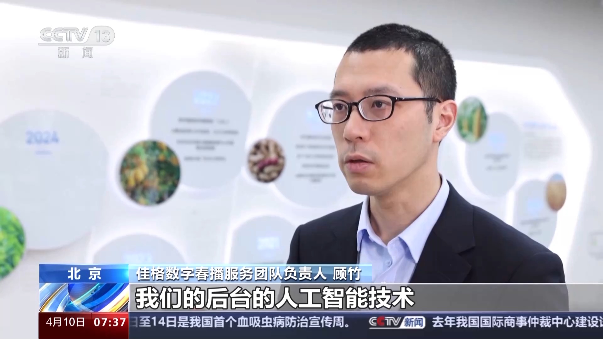 佳格數(shù)字春播服務(wù)團(tuán)隊(duì)負(fù)責(zé)人 顧竹:我們團(tuán)隊(duì)人不多,但是我們的數(shù)據(jù)服務(wù)已經(jīng)覆蓋到了全國4億畝耕地,核心的因素其實(shí)就是我們后臺的人工智能技術(shù)。