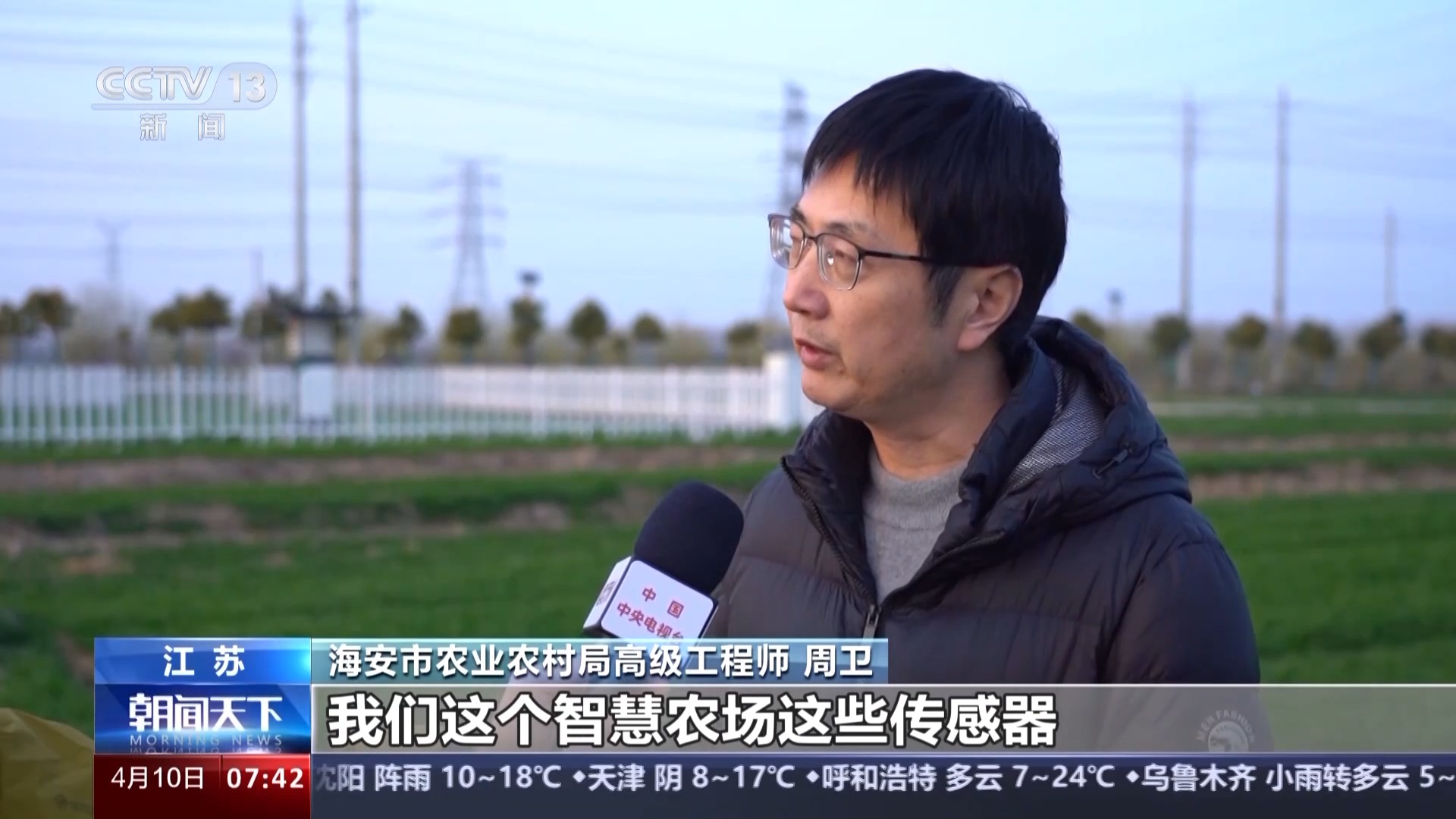 海安市農(nóng)業(yè)農(nóng)村局高級工程師 周衛(wèi):國家就把整個(gè)渠道、道路、灌溉系統(tǒng)修好,我們這個(gè)智慧農(nóng)場這些傳感器基本上都是國家補(bǔ)貼的。