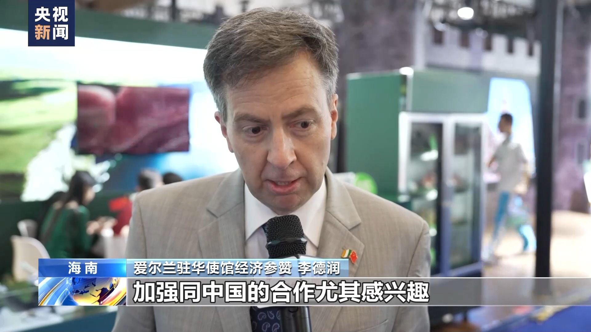 以新能源汽車、鋰電池、太陽能電池為代表的“新三樣”已經(jīng)是中國外貿(mào)的新名片。作為本屆消博會的主賓國,愛爾蘭駐華使館經(jīng)濟(jì)參贊李德潤在接受總臺記者采訪時表示,期待中國與愛爾蘭在綠色發(fā)展方面加強(qiáng)合作。