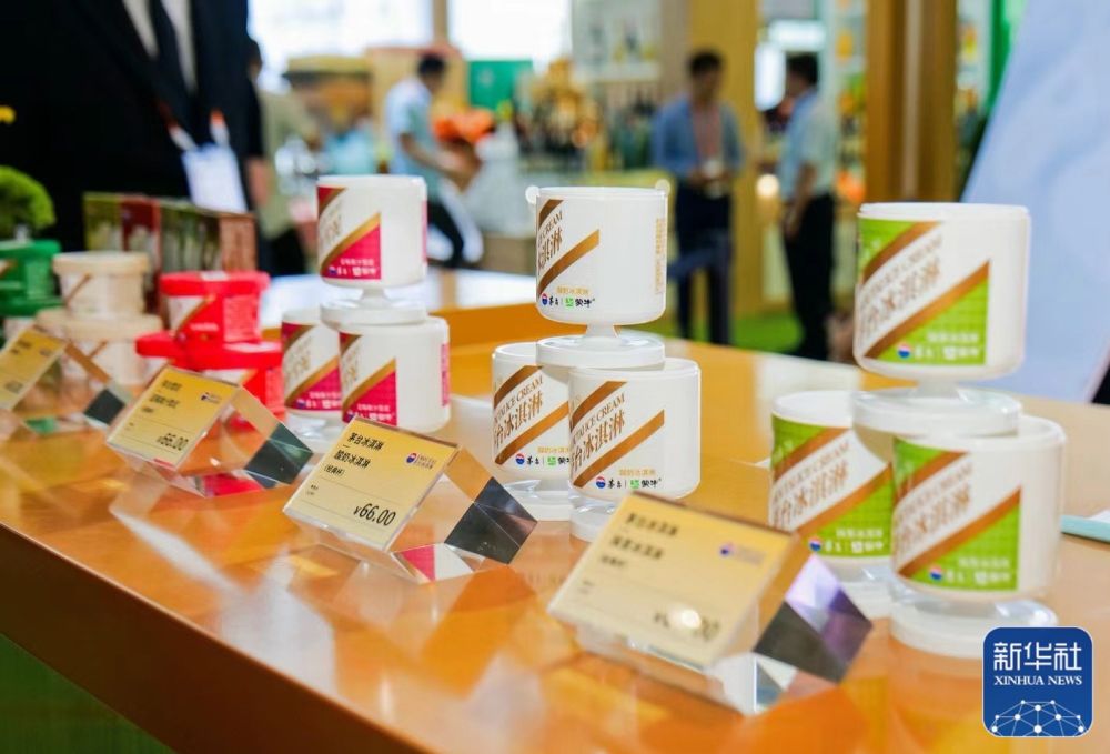 茅臺(tái)展區(qū)展示的茅臺(tái)冰淇淋。近年來,茅臺(tái)不斷推出文創(chuàng)產(chǎn)品,品牌年輕化成效顯著。新華社記者王楚天 攝