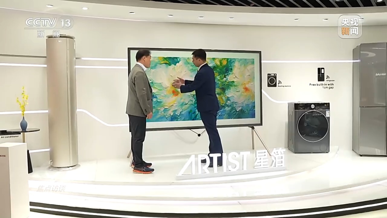 為了實(shí)現(xiàn)國際化戰(zhàn)略,長虹在距離廣州一小時(shí)車程的中山市專門建立了一個(gè)出口基地,用前店后廠的模式加快向海外出口。一走進(jìn)展廳,記者首先就被一款115寸的巨幅電視吸引。它不僅大,而且聰明,內(nèi)置了人工智能大模型,記者體驗(yàn)了一下它的AI繪畫功能。