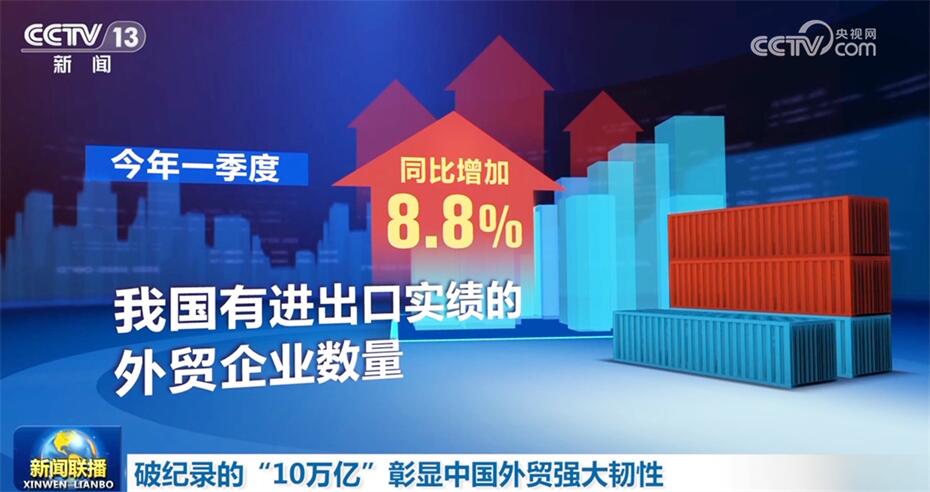 一季度,我國貨物貿(mào)易進(jìn)出口規(guī)模歷史同期首次突破10萬億元,增速創(chuàng)6個季度以來新高。一季度進(jìn)出口令人欣喜的數(shù)據(jù)彰顯了中國外貿(mào)的強(qiáng)大韌性,提振了人們對實現(xiàn)今年經(jīng)濟(jì)增長目標(biāo)的信心。