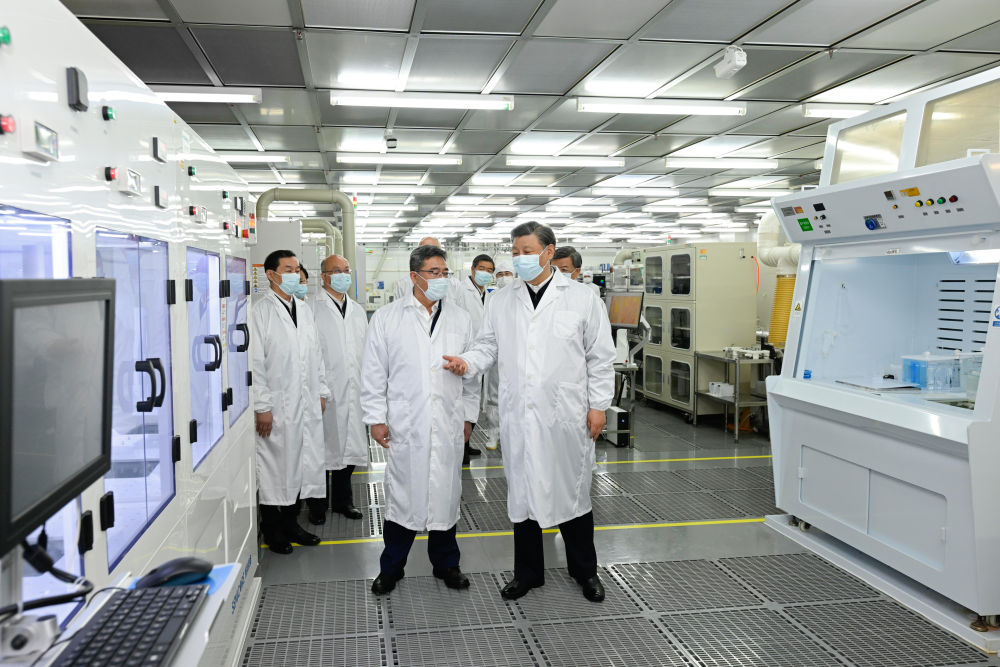 2023年5月11日至12日,習(xí)近平在河北考察,并主持召開深入推進京津冀協(xié)同發(fā)展座談會。這是12日上午,習(xí)近平在位于石家莊市的中國電科產(chǎn)業(yè)基礎(chǔ)研究院生產(chǎn)車間考察。