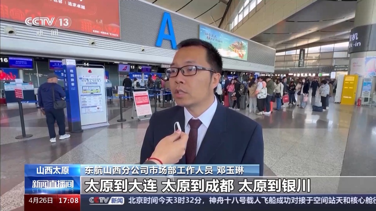 東航山西分公司市場部工作人員鄧玉琳 :從目前航班的運力情況來看,太原到大連,太原到成都,太原到銀川,太原到重慶、寧波這些城市,整個五一期間的預(yù)訂情況是比較好的。主要的到達目的地涉及國內(nèi)30余個大中小城市,還有兩個國際和地區(qū)航點。目前整體的運力投入,能夠極大地滿足和方便廣大旅客的“五一”出行需求。