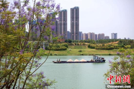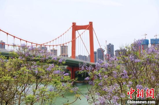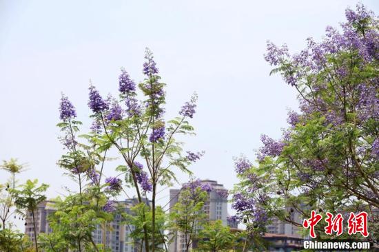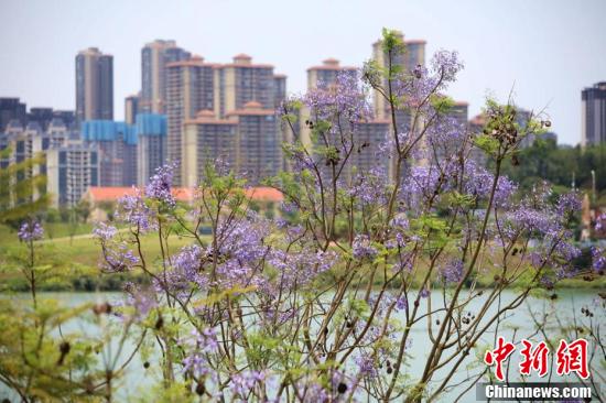 近日,廣西南寧市藍(lán)花楹盛開(kāi),藍(lán)紫色彩為城市增添了一道浪漫美景。