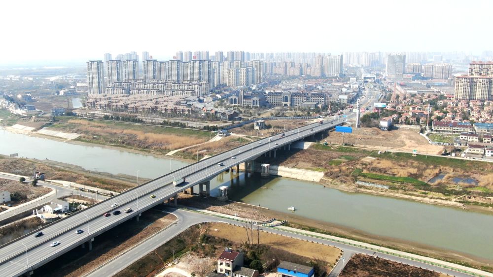 這是連接來安縣汊河鎮(zhèn)和南京市江北新區(qū)的汊河大橋(2023年3月2日攝,無人機(jī)照片)。新華社發(fā)(孫駿 攝)