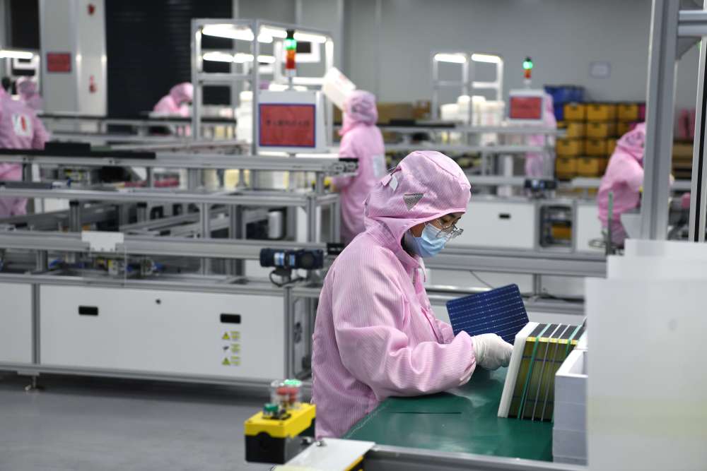 2023年3月1日,工作人員在“頂山—汊河”跨界一體化發(fā)展示范區(qū)的一家太陽能電池片企業(yè)生產(chǎn)線上忙碌。新華社記者 劉軍喜 攝