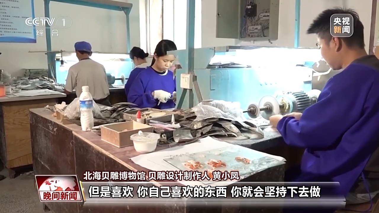 北海貝雕博物館貝雕設(shè)計制作人 黃小鳳:剛開始的時候?qū)W的話也比較容易受傷,但是喜歡,你自己喜歡的東西,你就會堅持下去做。