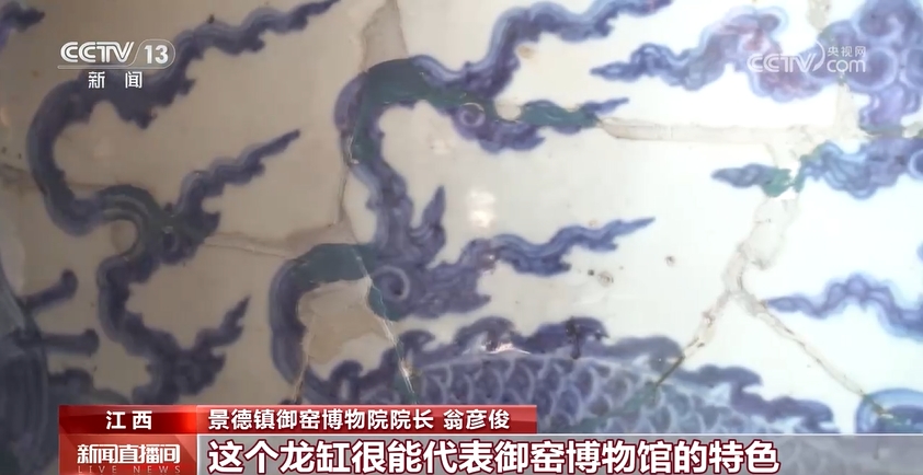 景德鎮(zhèn)御窯博物院院長 翁彥俊:我們的所有的展品都來自于我們身后的御窯廠,通過考古挖掘出來的。當年御窯對落選品的處理制度非常嚴格,不合格的就要打碎還集中掩埋,所以我們能夠發(fā)現(xiàn)這么多的碎片,并且能夠把它拼對出來。這個龍缸很能代表御窯博物館的特色。