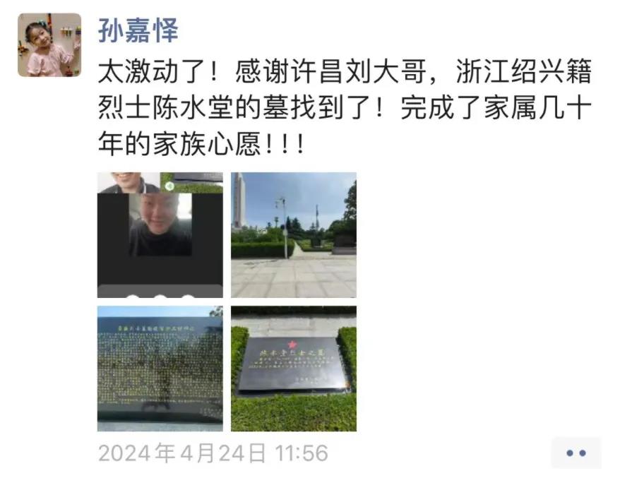 隨后,孫嘉懌聯(lián)系了許昌當(dāng)?shù)氐闹驹刚撸诹沂苛陥@內(nèi),他們找到了陳水堂烈士的名字。從接到求助到完成,前后不到24小時。然而,在孫嘉懌經(jīng)歷的案例中,這樣的其實是極少數(shù)。