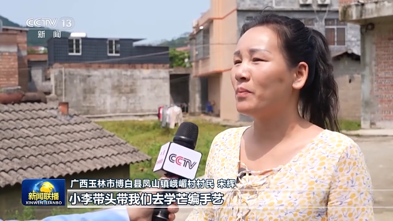 廣西玉林市博白縣鳳山鎮(zhèn)峨嵋村村民 宋輝:小李帶頭帶我們?nèi)W芒編手藝,幫我們找訂單,以前楊梅下了市,我們基本也沒什么能干的了,現(xiàn)在都有點忙不過來。