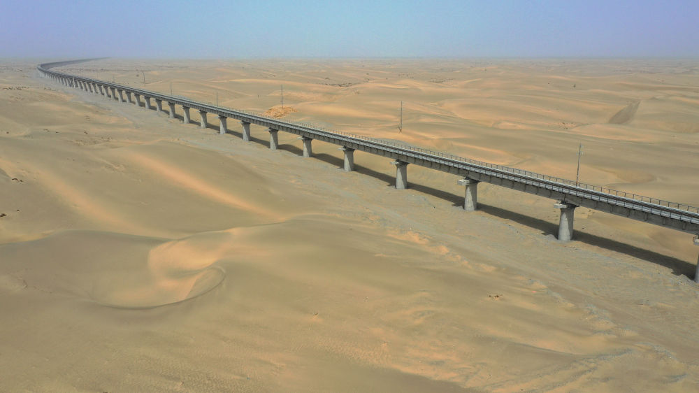 這是2022年5月19日拍攝的和若鐵路依木拉克特大橋(無人機(jī)照片)。新華社記者 丁磊 攝
