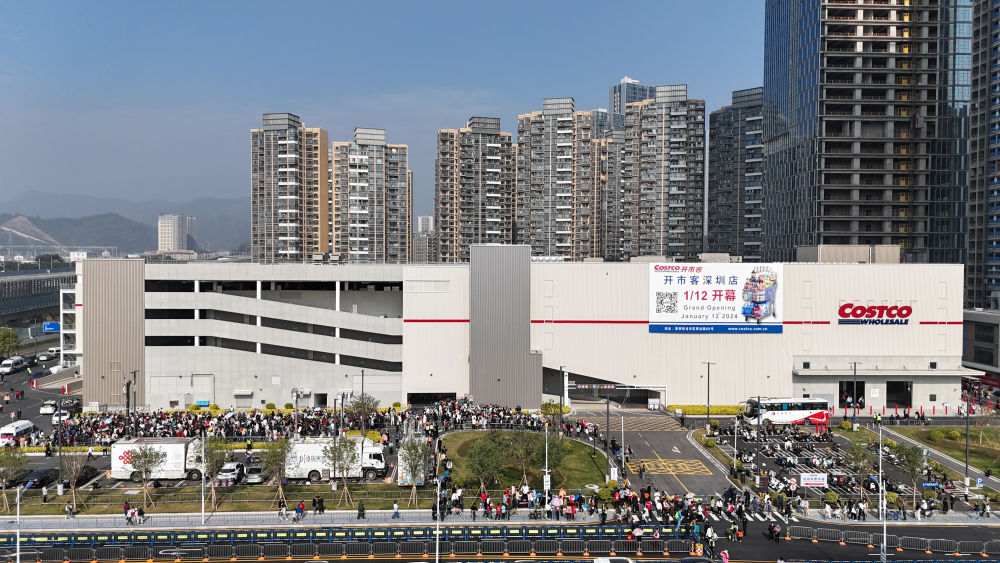 1月12日,開市客深圳店外排起長(zhǎng)龍(無人機(jī)照片)。新華社記者 梁旭 攝