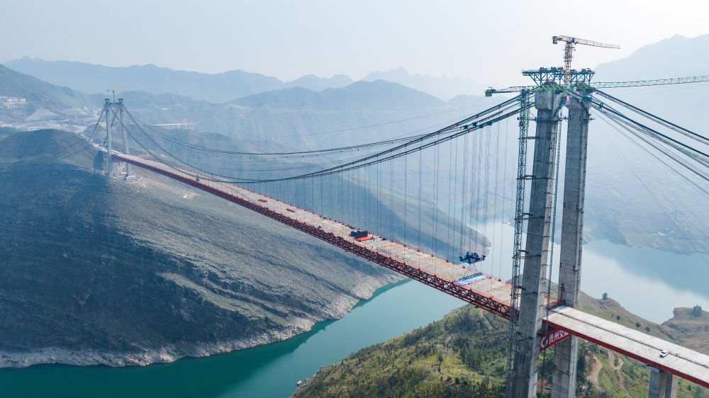 貴州交建集團投資建設的納晴高速牂牁江大橋順利實現(xiàn)合龍,為納(雍)晴(?。└咚偃€建成通車打下堅實基礎(chǔ)(4月28日攝,無人機照片)。新華社記者 陶亮 攝