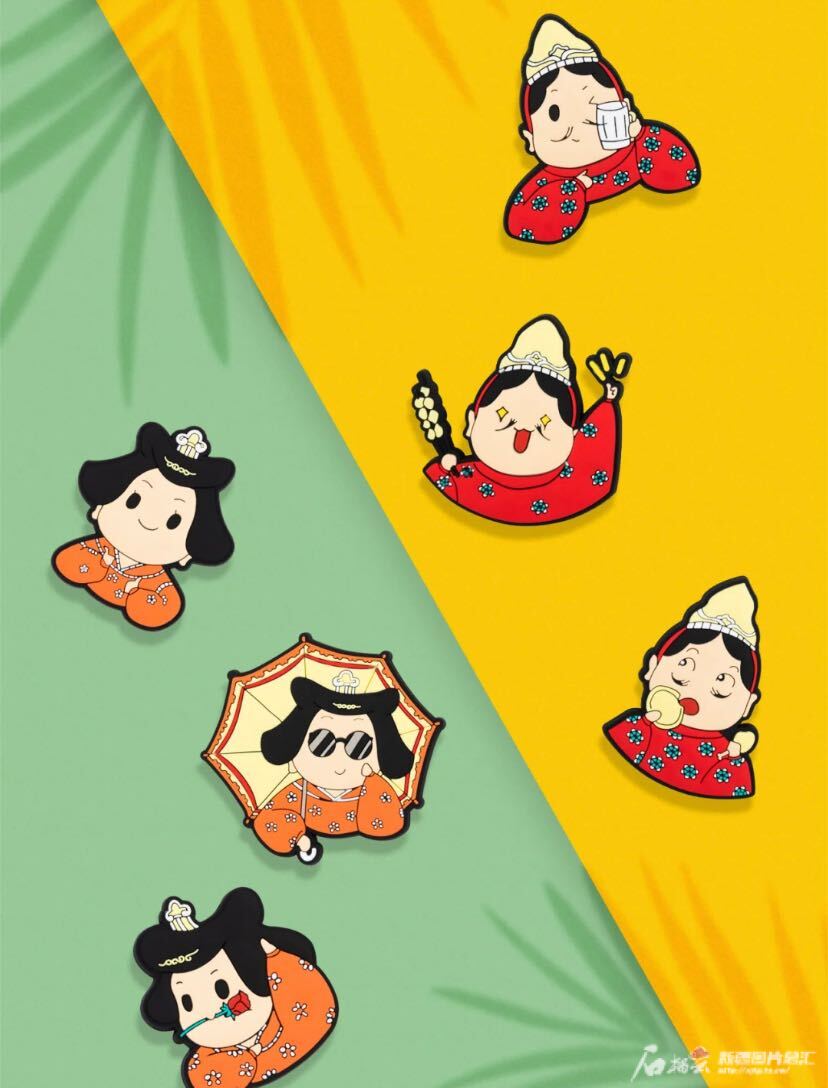 取材于第20窟壁畫(huà)中高昌供養(yǎng)人形象的“小智”“小慧”冰箱貼。圖片由新疆博物館文創(chuàng)部提供