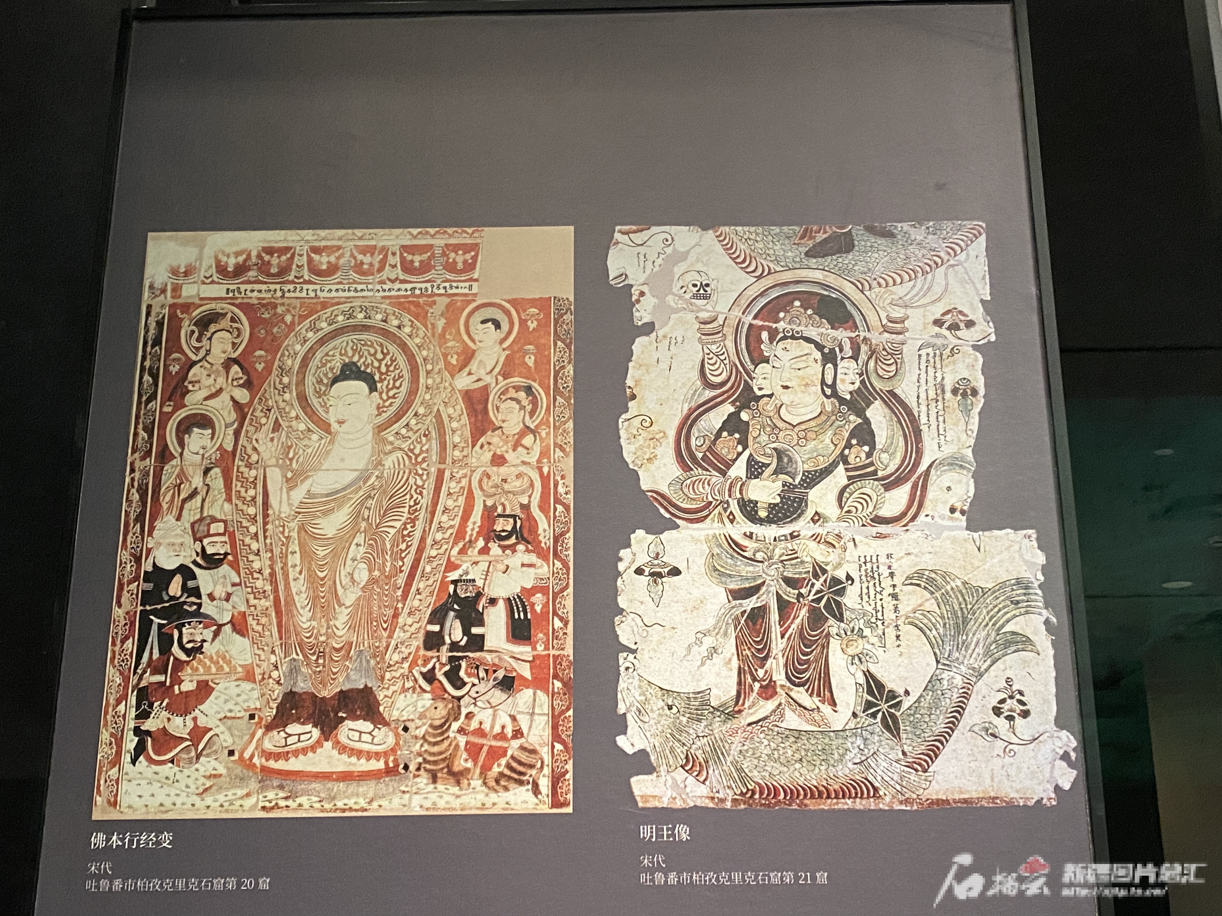 陳列于新疆博物館展廳中的柏孜克里克千佛洞遺址第20窟壁畫(huà)圖片形象。天山網(wǎng)-新疆日?qǐng)?bào)記者 趙梅攝