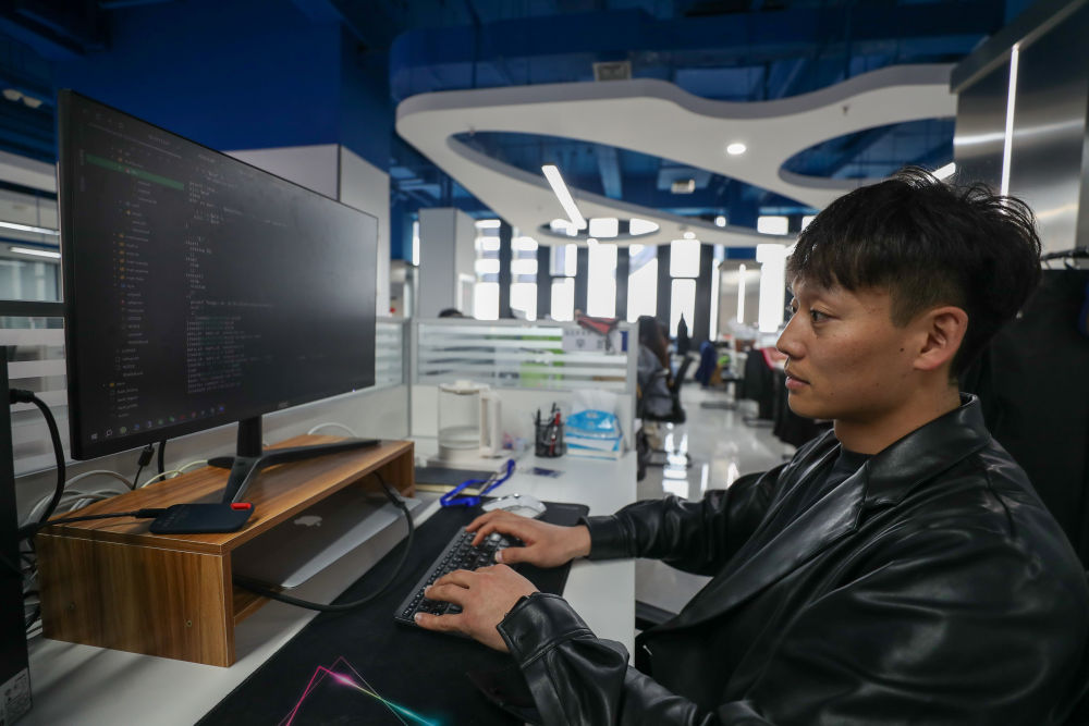 2024年4月18日,在哈爾濱工業(yè)大學(xué)人工智能研究院有限公司,科研人員在進(jìn)行數(shù)據(jù)編程。新華社記者 張濤 攝