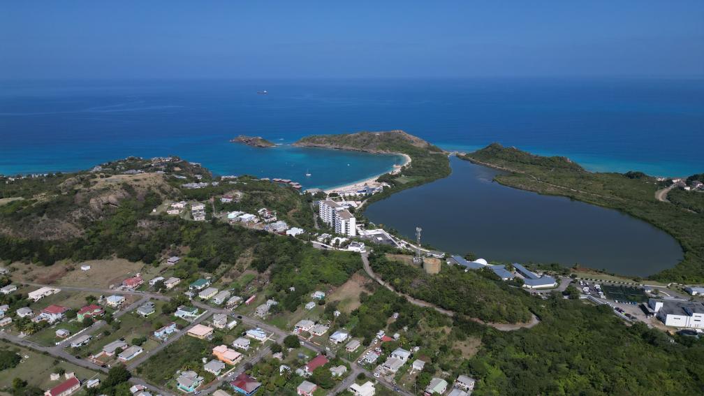 這是2月1日用無(wú)人機(jī)拍攝的安提瓜和巴布達(dá)首都圣約翰海岸線一景。新華社發(fā)(里卡多·蒙托亞攝)