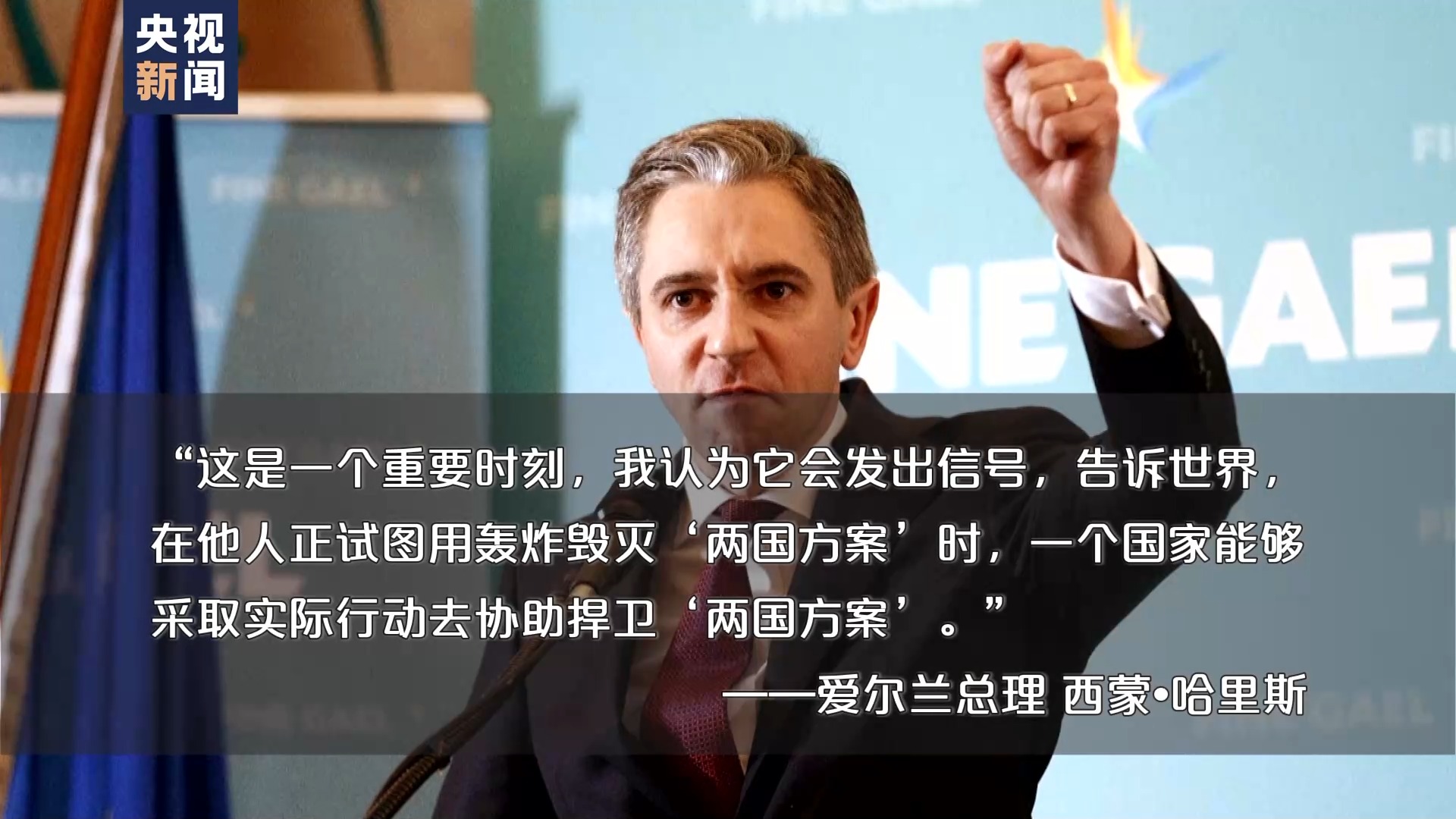 愛爾蘭總理 西蒙·哈里斯:我們說過承認(rèn)巴勒斯坦國的時刻越來越近了,現(xiàn)在這一時刻終于到了。這對愛爾蘭和巴勒斯坦來說都是歷史性的一天,重要的一天。