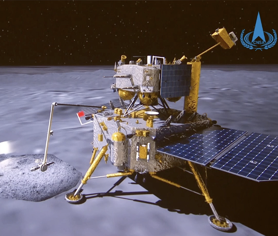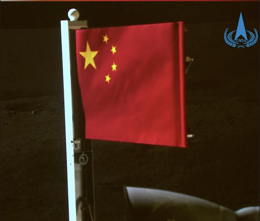 6月4日,五星紅旗在落在月背的嫦娥六號探測器上展開。鮮艷的五星紅旗再次閃耀月球,這是中國首次在月球背面獨立動態(tài)展示國旗。