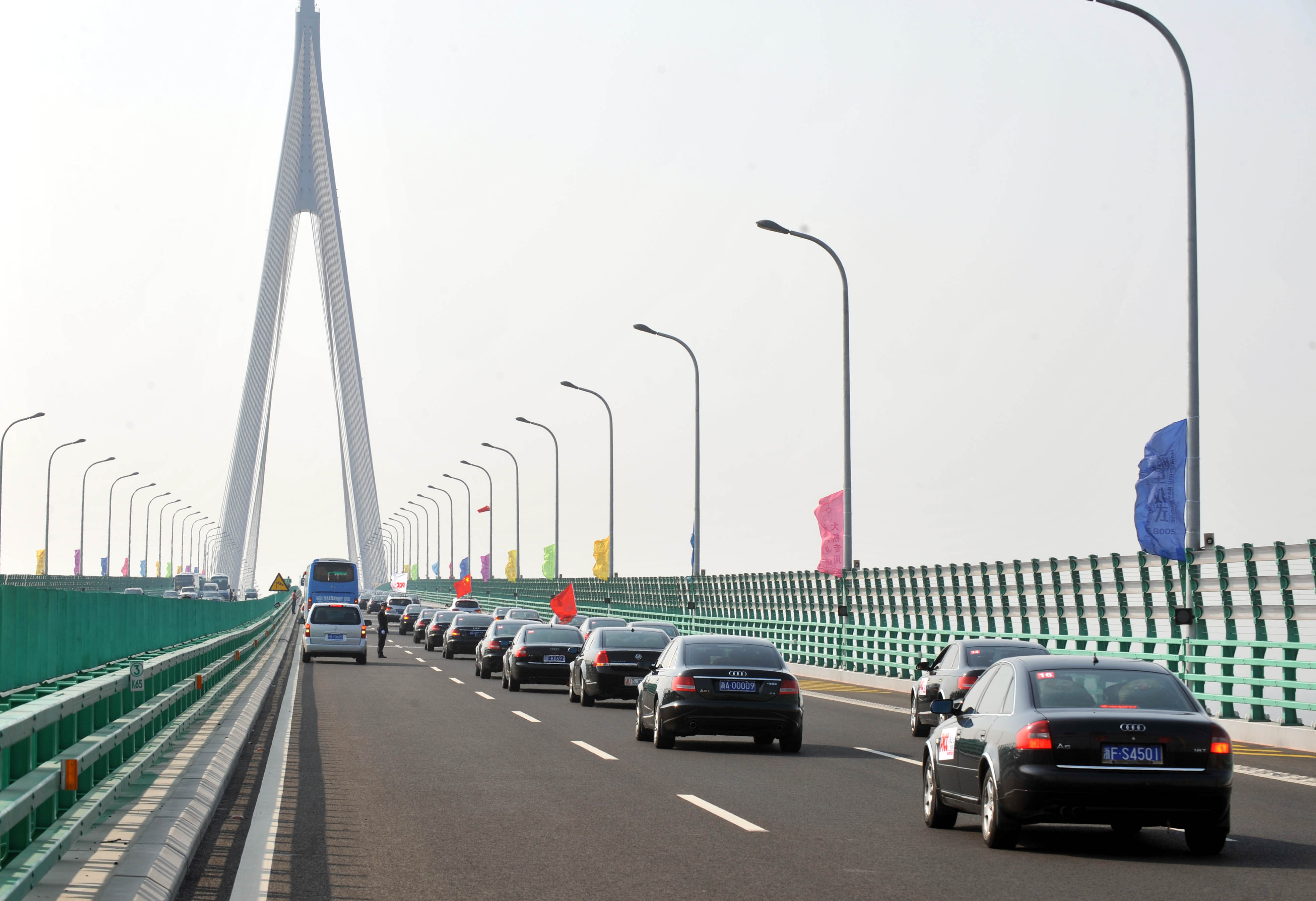 2008年5月1日,杭州灣跨海大橋試運(yùn)營通車。新華社記者 王小川 攝