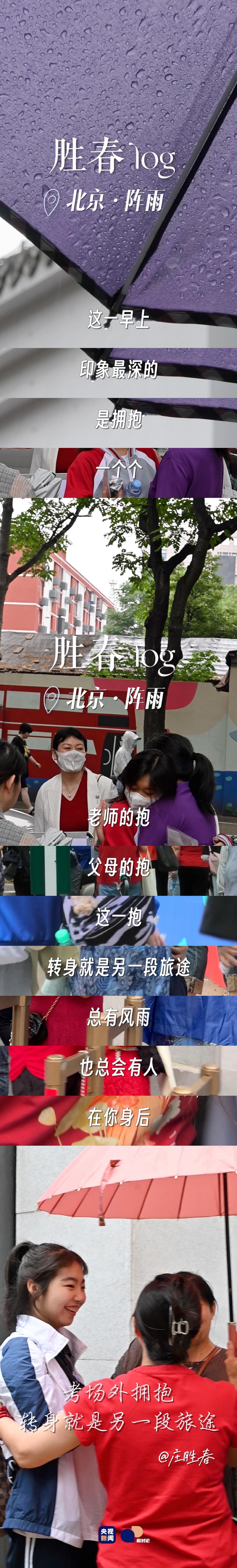 北京的陣雨里,不少考生,要在進場前,等等爸爸媽媽。