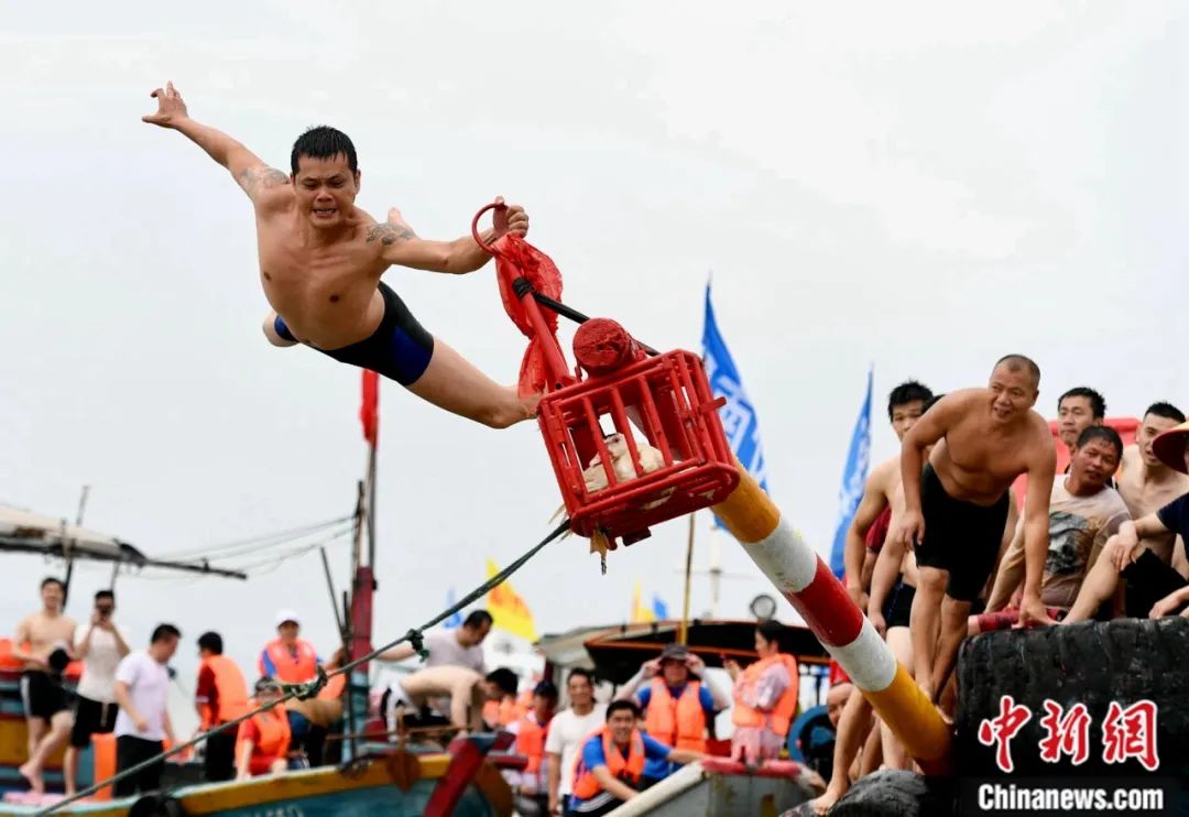 莆田民間民俗表演助興“爬龍船”。中新社記者 王東明 攝